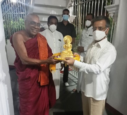 Seeks blessings from Mahanayake Thera for peace and prosperity of the people of Sri Lanka and India