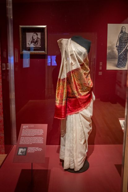 The exhibition also includes an ode to Jagjit Singh, an activist working with Mahatma Gandhi who fled from India to New York after British authorities issued a warrant for his arrest in the 1920s. He opened an Indian textile and sari business on Fifth Avenue that drew notable clients, including Yul Brynner, Eleanor Roosevelt and Hollywood costume designers.