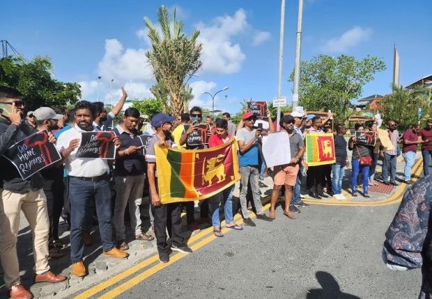 MALÉ – Escaping Sri Lankan President Gotabaya Rajapaksa faced protests in the Maldives Wednesday (13) with dozens of compatriots urging Malé not to provide him safe heaven.