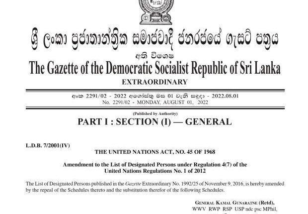 According to the amendment dated July 28, 2022 and signed by Defence Secretary Kamal Gunaratne, fifteen entities including the Liberation Tigers of Tamil Eelam (LTTE), Tamil Rehabilitation Organization, World Tamil Movement, Transnational Government of Tamil Eelam, World Tamil Relief Fund, National Thowheed Jama’ath and Save the Pearl Society, and 316 individuals remain in the new schedule.