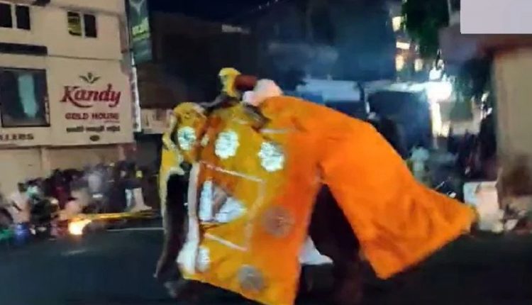 Footage shared on social media showed one of the creatures shaking off its decorative clothing and charging down a street in Kandy with several handlers in hot pursuit.
