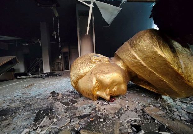 Little was left when Reuters visited on Wednesday (11) except a golden bust of their father face down on the blackened floor. Houses and shops linked to ruling party lawmakers were also heavily damaged.