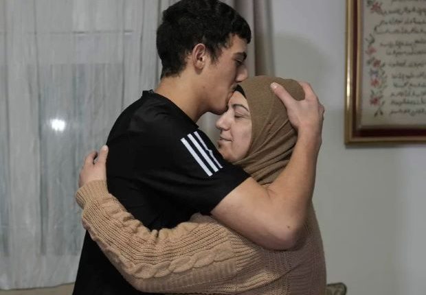 In annexed east Jerusalem, prisoner Muhammad Abu Al-Humus called his release “an indescribable joy” and kissed his mother’s hand as he entered his home.