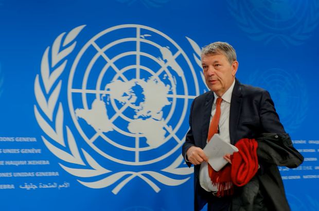 UNRWA Commissioner-General Philippe Lazzarini leaves after a press conference on the last day of his mandate at the United Nations in Geneva, Switzerland, on Tuesday (March 31, 2026) – Denis Balibouse /Reuters
