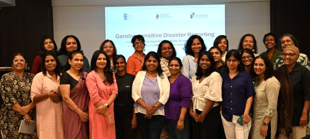 The workshop featured a comprehensive and multidisciplinary agenda, with expert-led sessions on disaster risk reduction, lived experiences in post-disaster contexts and gender-sensitive journalism. Presentations were delivered by Madhavi Ariyabandu of Duryog Nivaran, Kumudini Samuel of the Women and Media Collective, and award-winning investigative journalist Dilrukshi Handunnetti, Trustee of South Asian Women in Media and Director of the Centre for Investigative Reporting Sri Lanka.