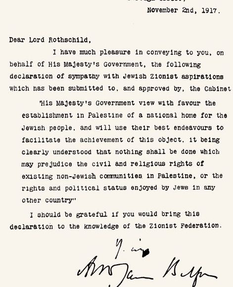 On November 2, Balfour sent his letter to Lord Rothschild, a prominent Zionist and a friend of Chaim Weizmann, stating that: “His Majesty’s Government view with favour the establishment in Palestine of a national home for the Jewish people.”