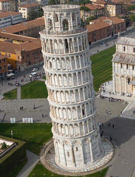In recent years, it has been determined that the tower’s lean is caused by the remains of an ancient river estuary located under the building. The ground is made up in a large part of water and silty sand, and one side of the heavy marble building began gradually sinking into the ground as soon as the foundation was laid.